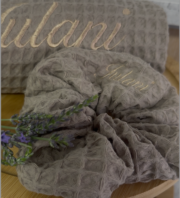 The Waffle Scrunchie is a considered finishing touch for slow mornings, spa rituals, and beachside days. Made from the same softly textured waffle weave as out towels, it offers a gentle hold that’s kind to your hair while adding an elevated, coordinated look.